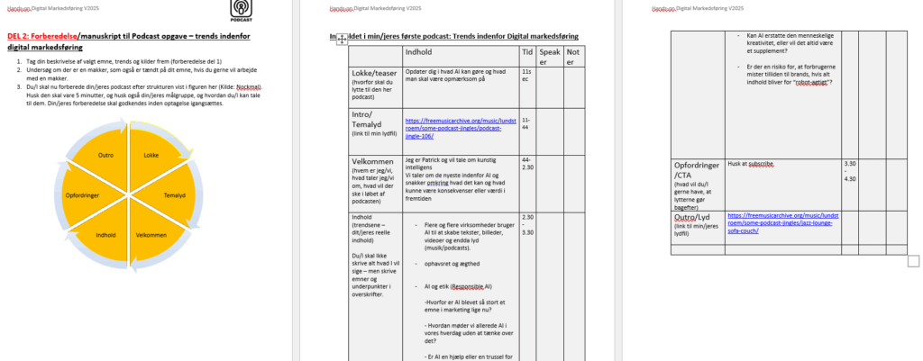 I forbindelse med mit arbejde med podcastproduktion i skolen, har jeg lavet et manuskript for at sikre, at indholdet blev klart, struktureret og professionelt.