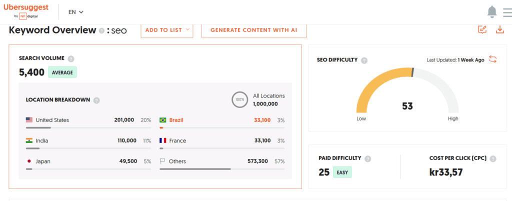 Brug et par forskellige SEO-værktøjer til at finde flere søgeord, estimere søgevolumen og konkurrence: