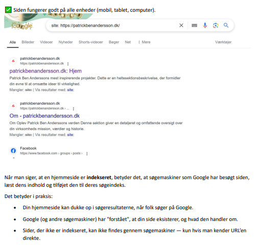 Hvis Google ikke kan crawle og indeksere din hjemmeside korrekt, vil den ikke dukke op i søgeresultaterne. Sikre dig at: